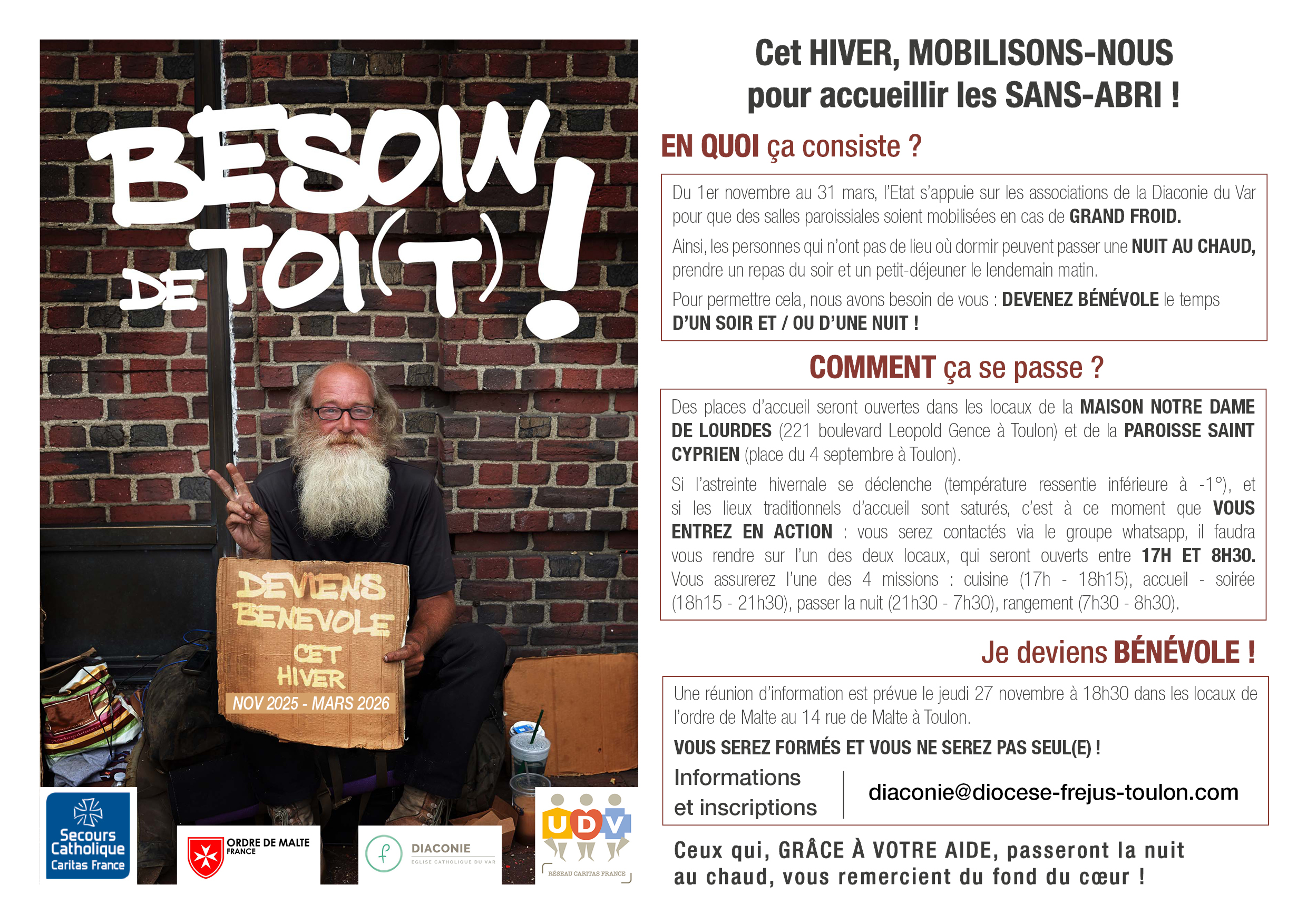 Maison Notre-Dame de Lourdes Toulon et Paroisse Saint Cyprien Toulon – Astreinte hivernale :