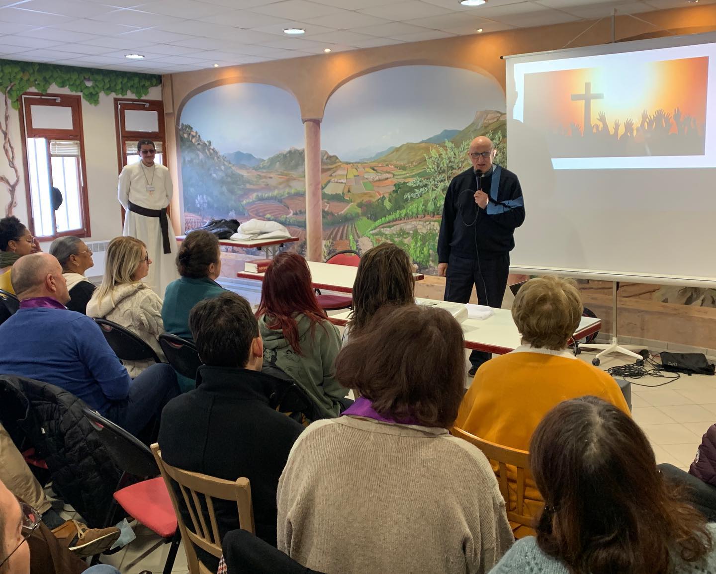 Les 5 et 6 mars derniers, des catéchumènes et néophytes ont vécu à la Navarre une retraite organisée par le Service de l’Initiation Chrétienne des Adultes (ICA), avec la participation de différents prêtres et laïcs du diocèse. Ainsi, Don Laurent Larroque, de la paroisse de Saint-Raphaël, a donné une catéchèse sur l’Amour de l’Église, à partir d’Éphésiens 5, 25-26 : « À l’exemple du Christ, il a aimé l’Église, il s’est livré lui-même pour elle ». L’abbé Pierre Pommeret a animé les vêpres. Un couple de la paroisse de La Farlède et l’équipe diocésaine ont organisé les différents temps forts, dont la veillée d’adoration du samedi.