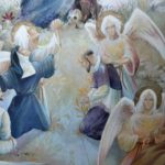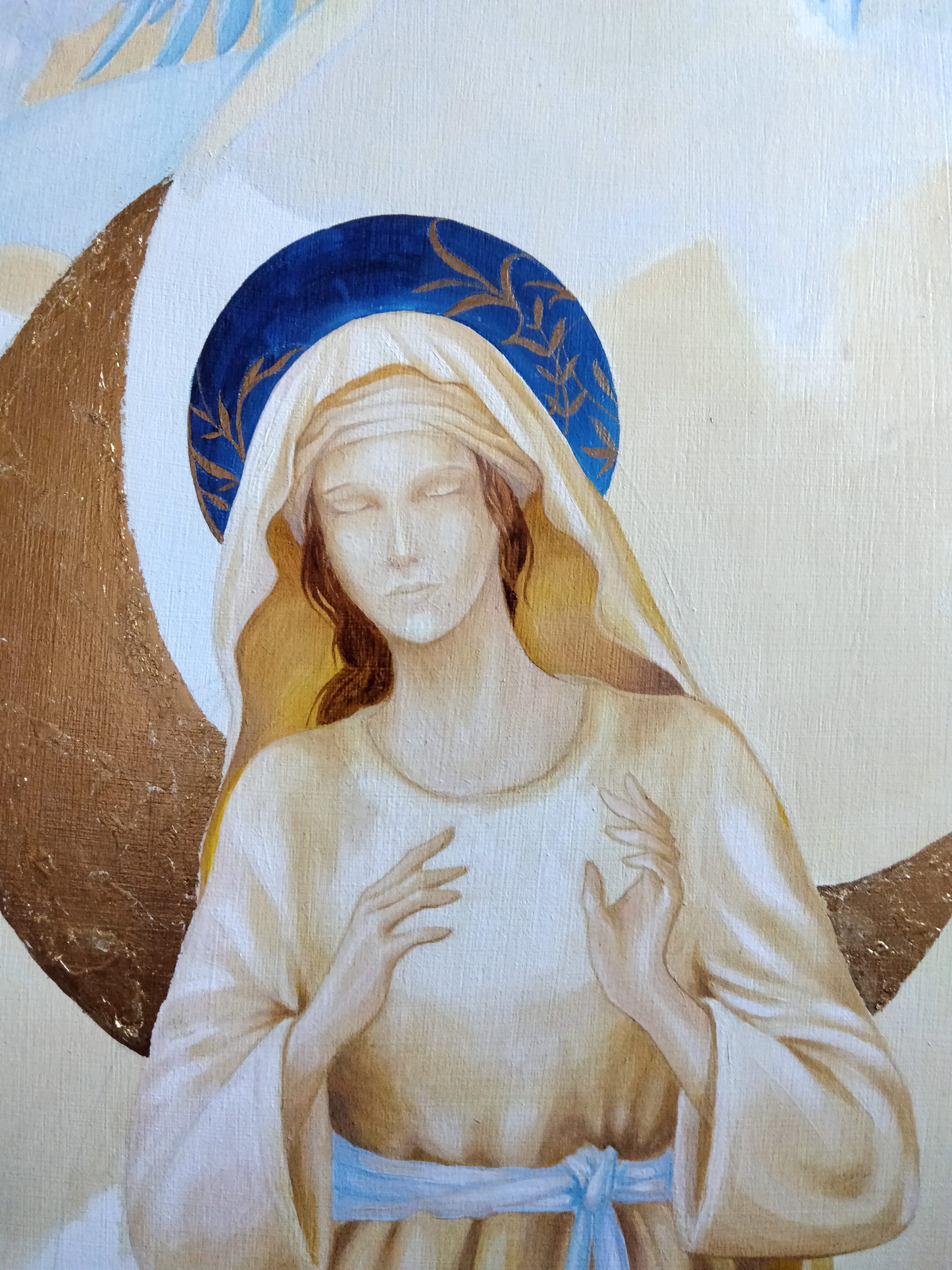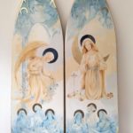 L’art sacré, c’est aussi se donner à Dieu par la prière. « Ce qui me donne le plus de joie, est le fait de me sentir enfin centrée, à ma place de créature en faisant la volonté de Dieu et de me sentir ainsi en communion avec Lui. Je pense avoir été créée pour Lui rendre gloire en tant qu’artiste car c’est là que je me sens le plus heureuse. Et j’espère lui rendre ce bonheur avec mes oeuvres. Quand je peins, la prière que je répète est toujours « pourvu que cette peinture touche les cœurs, qu’au travers de ce que je fais, les gens soient touchés par Dieu » », confie humblement Ségolène.