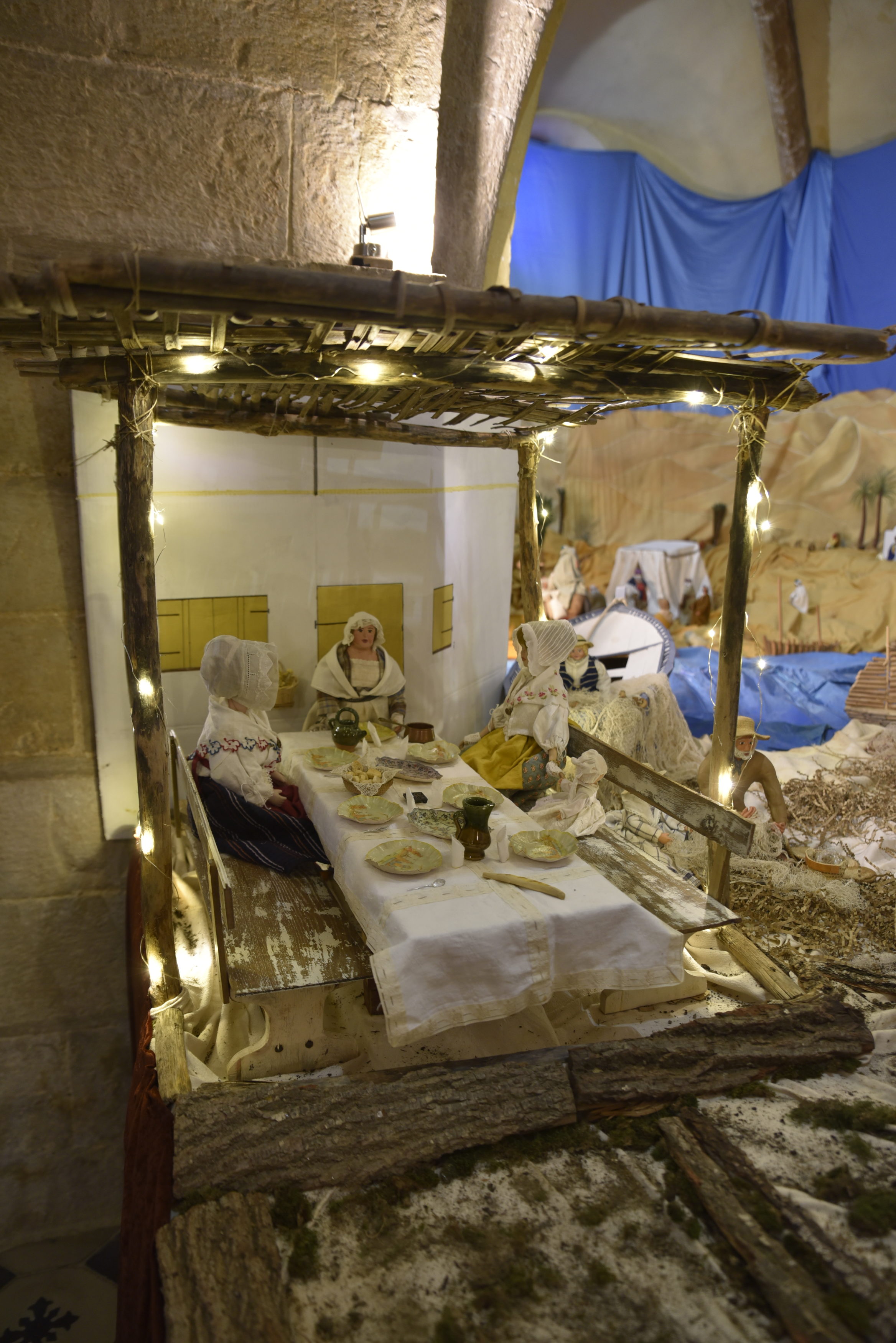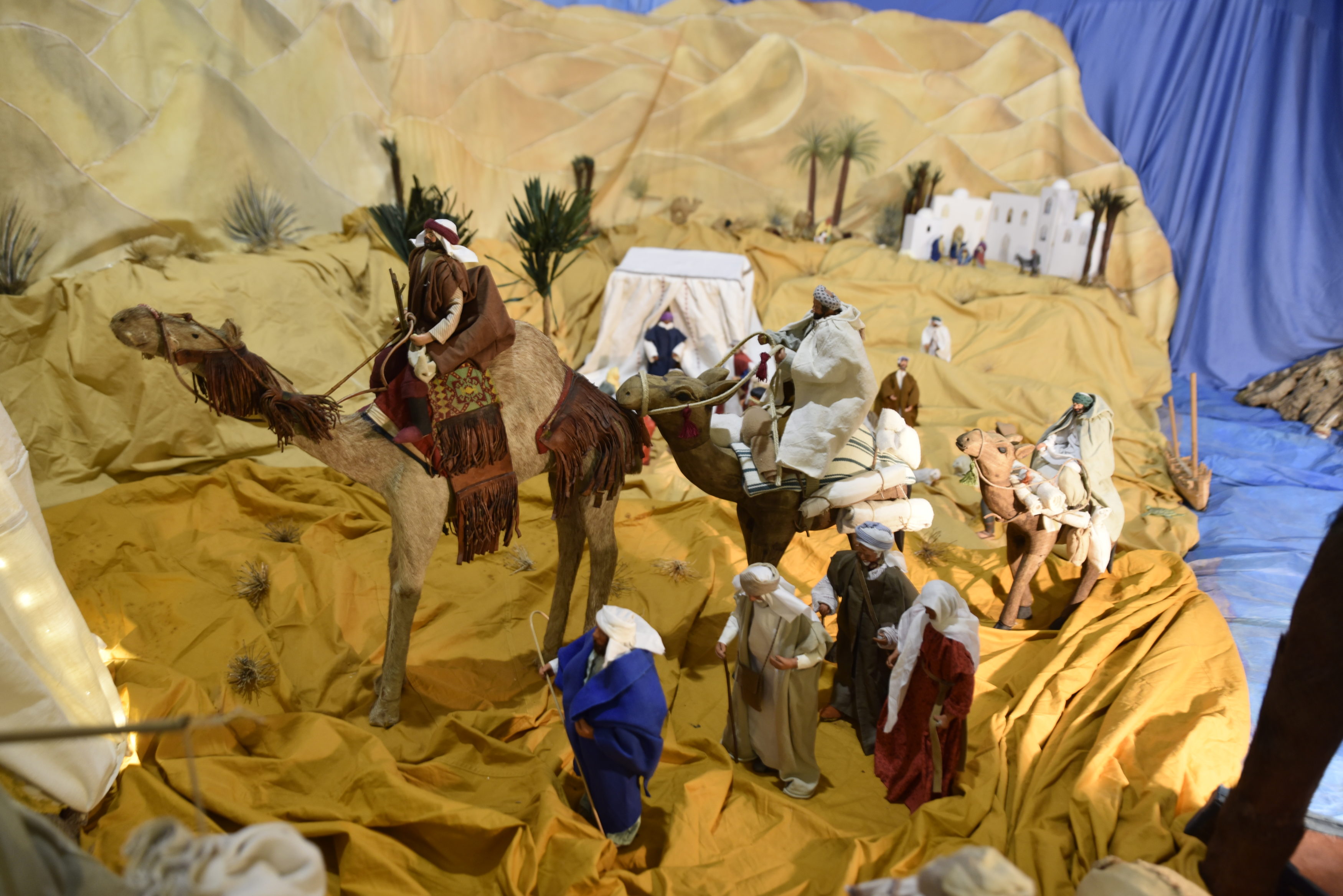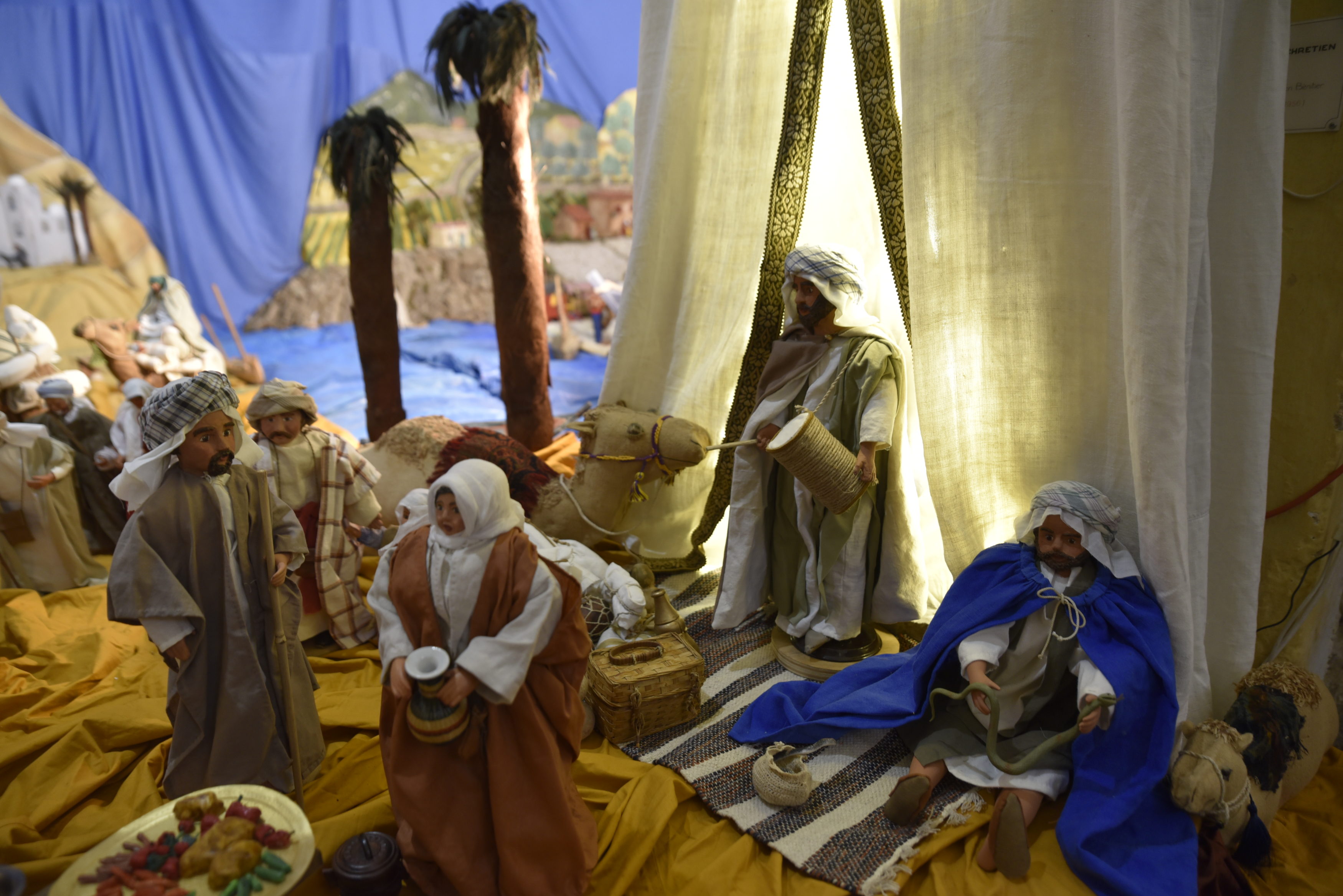Tout ce qu’Edith crée est présent dans son esprit bien avant de commencer. Elle pense par exemple à ajouter une Oasis près de la Sainte Famille pour l’arrivée des mages qui attendent sous la tente avec un campement en attendant de rejoindre le nouveau-né annoncé, Emmanuel « Dieu avec nous », entourés de dromadaires, de bédoins, de caravaniers, d’une marmite avec le couscous pour se nourrir. Et enfin « Marie et Joseph avec l’emplacement pour l’avènement du petit Jésus lorsqu’il arrivera au milieu de nous », conclut Edith, pleine de joie.