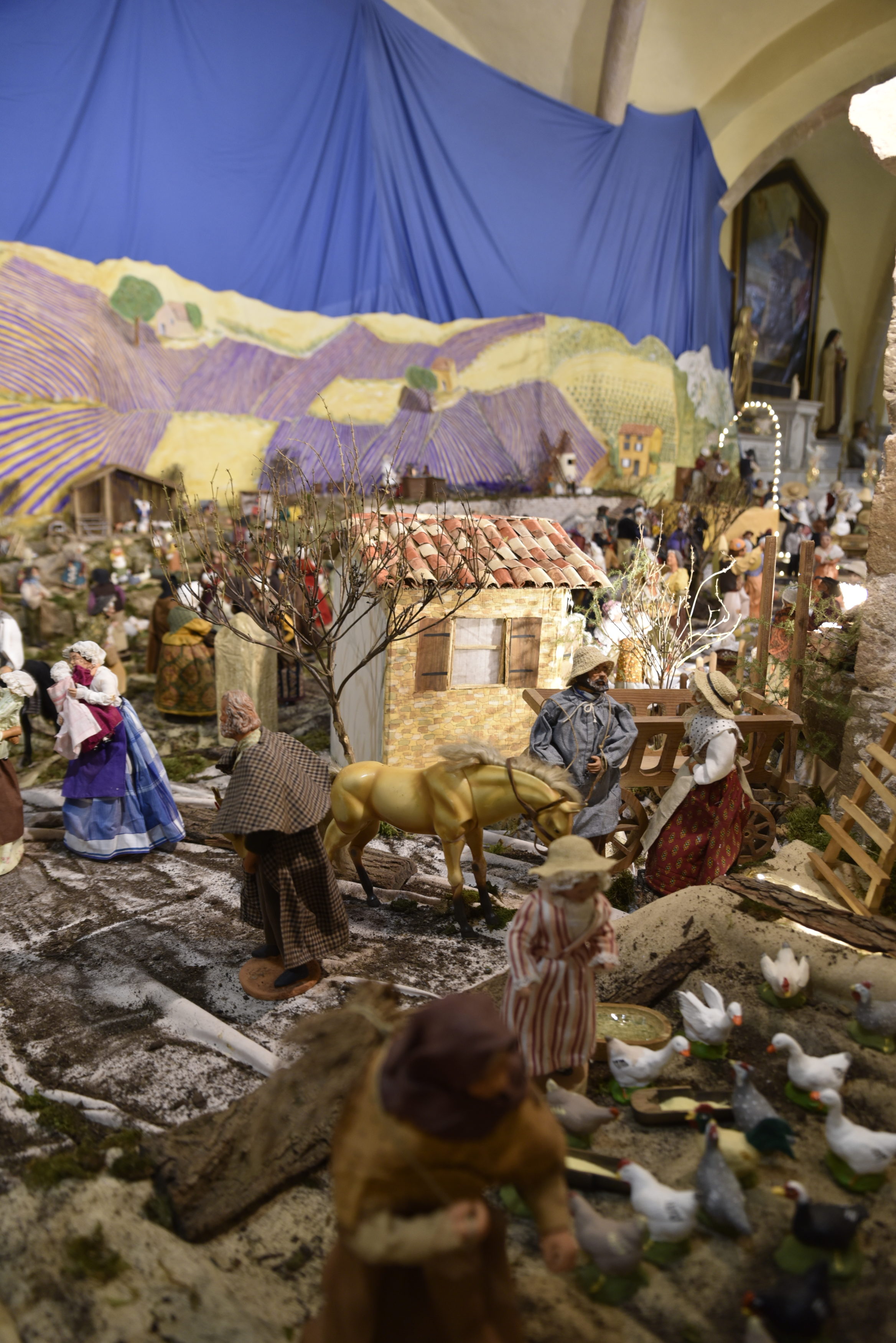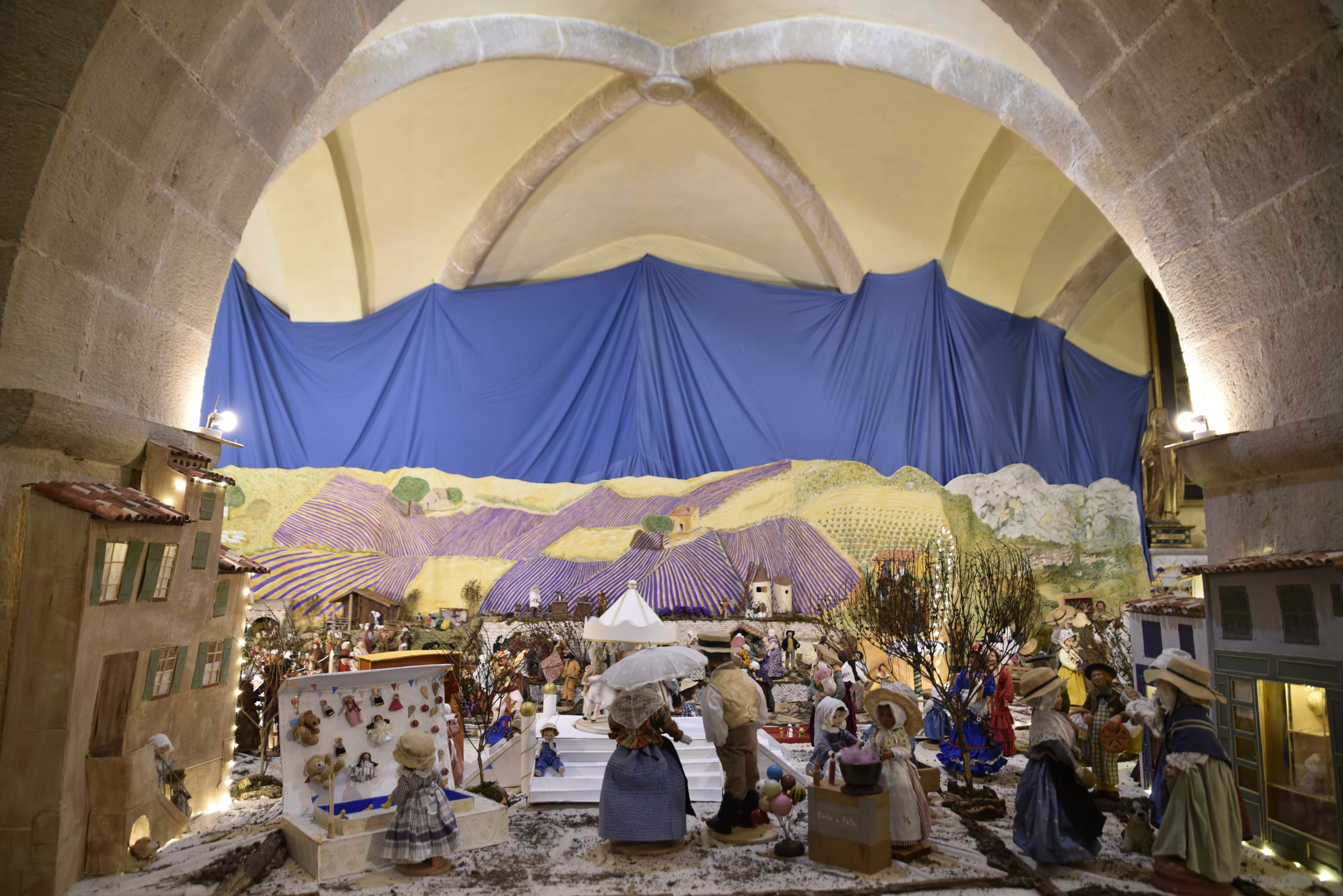 L’église Saint-Pons à Cabasse cachée dans un recoin de la place du village, se dévoile peu à peu et invite le promeneur à découvrir toute la richesse de la magnifique crèche qui se trouve à l’intérieur et offre aux yeux un émerveillement comme on en voit peu. Formée par trois petites chapelles en guise de lieux pour l’édifier, la grande crèche provençale confectionnée par Edith prend place dans l’église du village. Dès son plus jeune âge Edith a toujours aimé créer des crèches mais sa maman ne voulait pas que cela prenne trop de place.