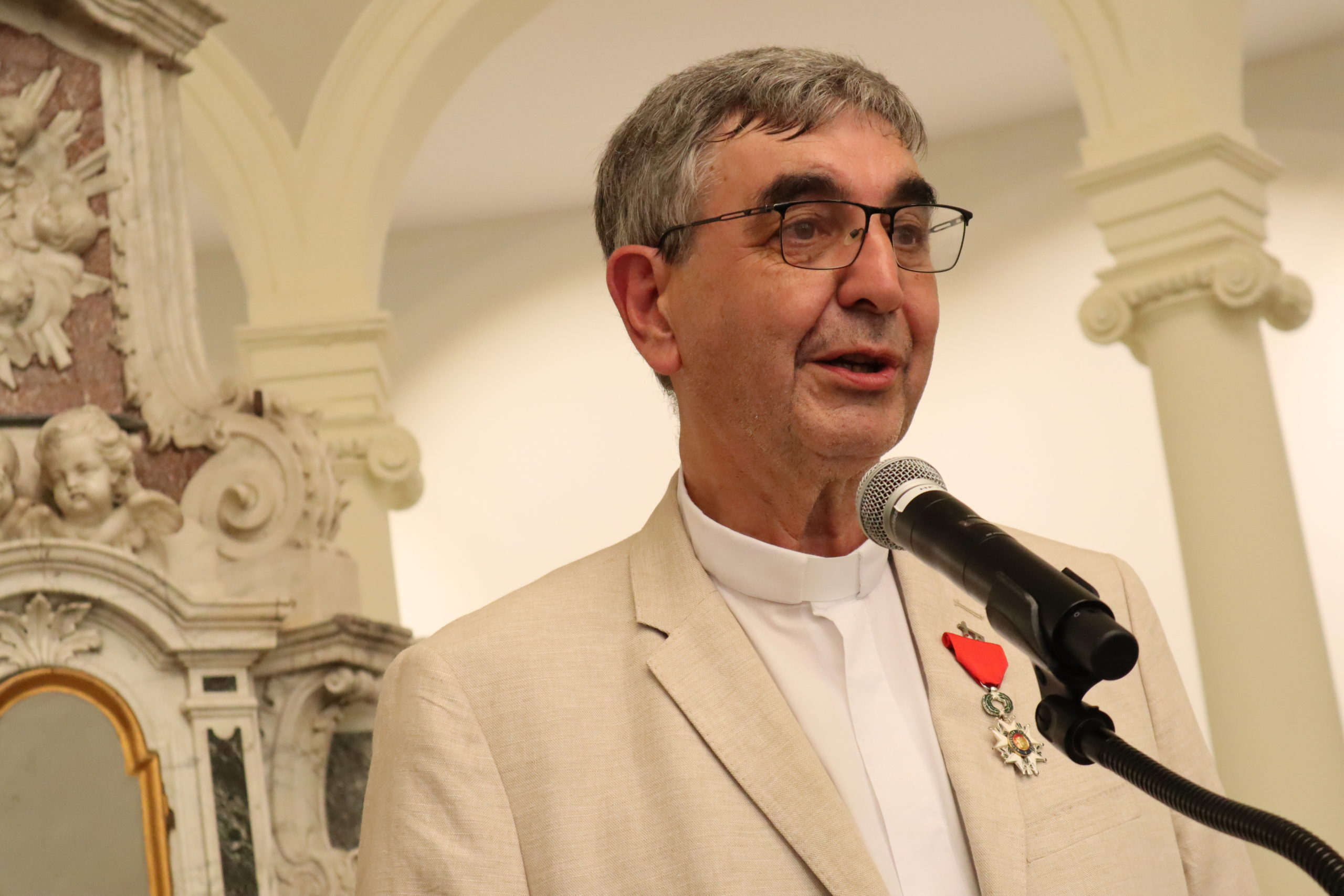 Vendredi 26 mai 2023, Gilles Rebêche, diacre délégué diocésain à la solidarité dans le Var, responsable de la diaconie du Var et fondateur de l’Union Diaconale du Var, s’est vu remettre la légion d’honneur dans l’ancienne chapelle de l’hôtel Dieu de Toulon, des mains de Jean Castex.