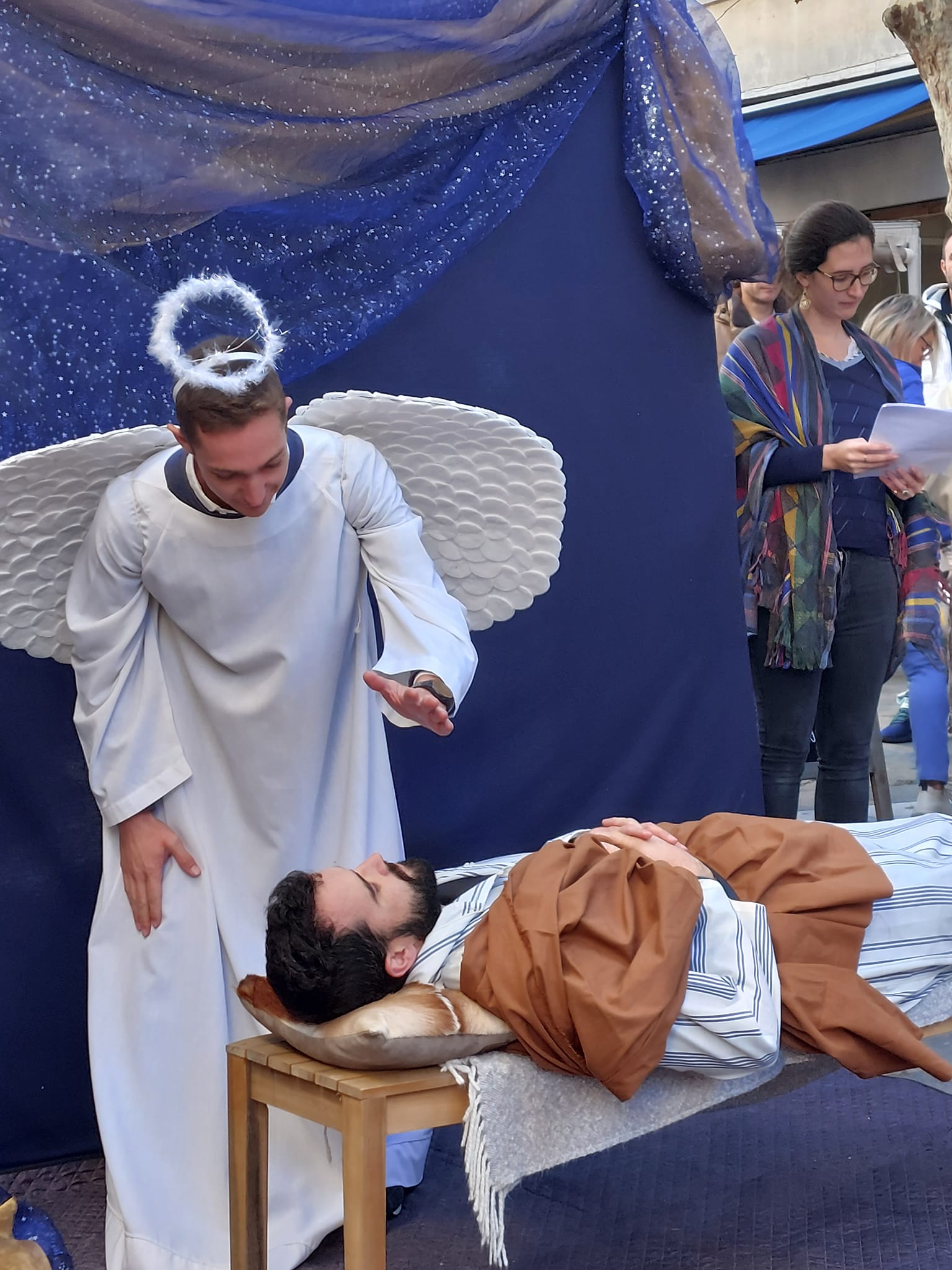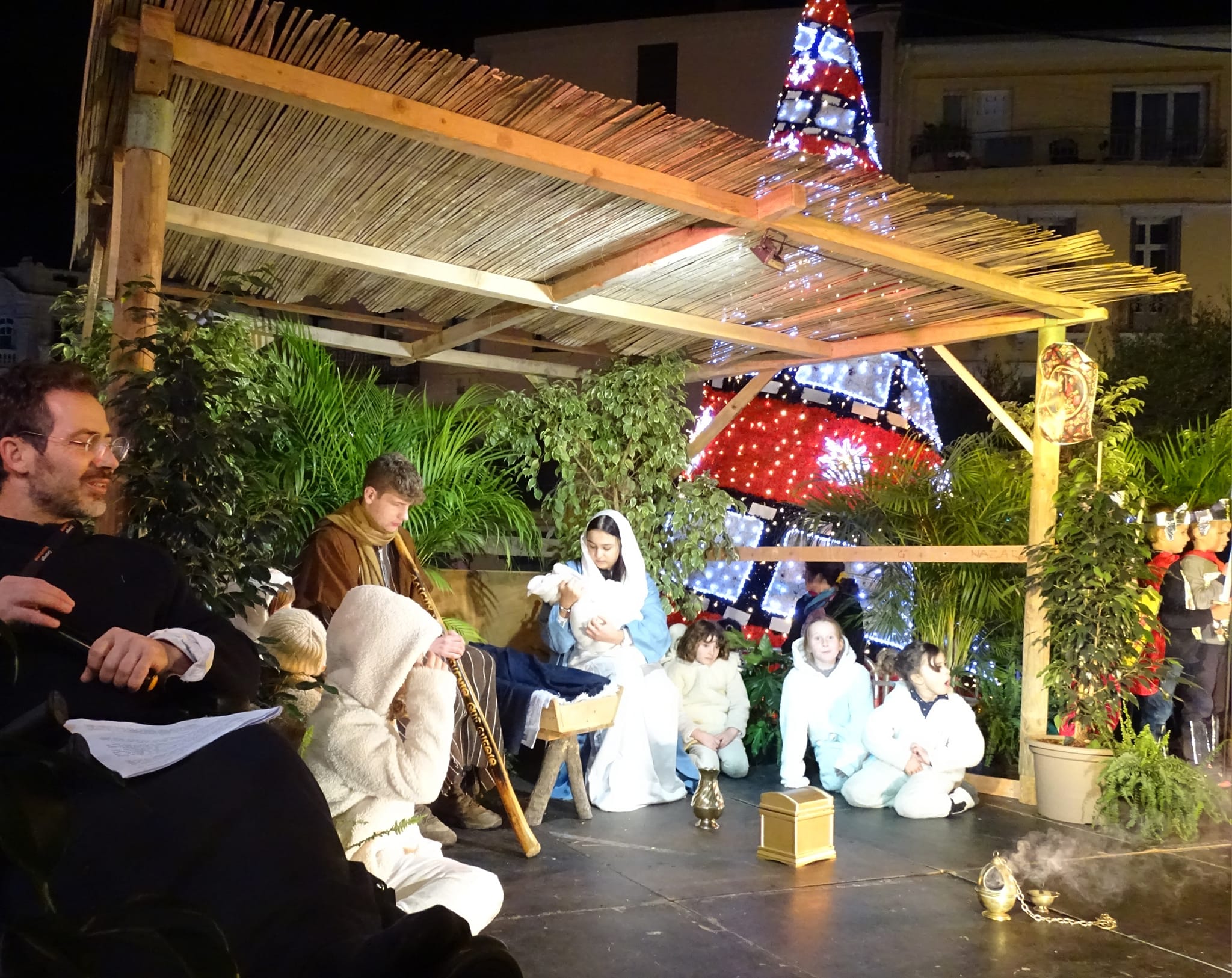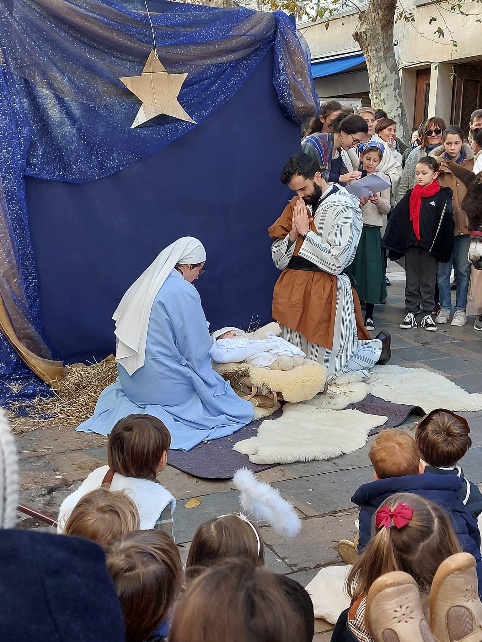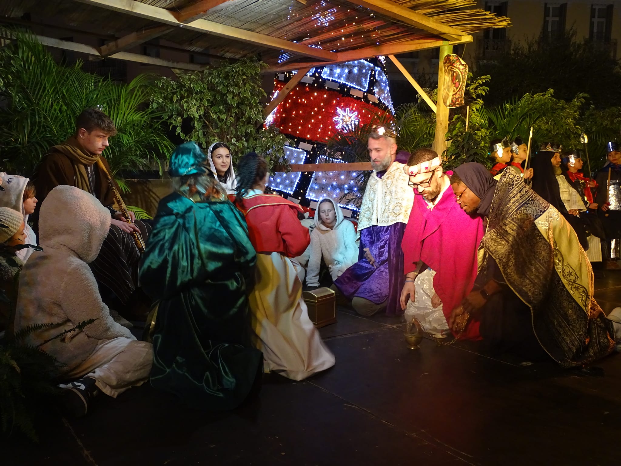 La crèche vivante est une courte pièce de théâtre relatant l’histoire de la naissance de l’Enfant-Jésus. Elle voit le jour pour la première fois au XIIIème siècle, lorsque saint François d’Assise, fondateur de l’ordre des Frères mineurs, se rend à Bethléem où il visite la basilique de la Nativité. Émerveillé par cet édifice, il veut reproduire la scène de la Nativité.