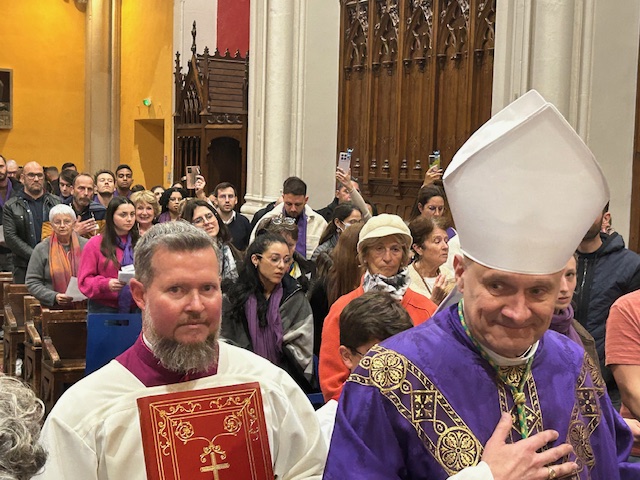 Fabienne (42 ans) : « J’ai eu la chance d’être accompagnée de mon parrain et de ma marraine pour ce magnifique appel décisif qui restera gravé dans mon cœur. J’ai pu sentir la communion de tous les catéchumènes qui parcourent le même chemin que moi et je me suis laissée porter par le moment et les chants. Ce fût un moment suspendu, hors du temps. Je suis vraiment reconnaissante envers toutes les personnes qui ont participé à cette journée, tous les prêtres qui étaient très nombreux, c’était merveilleux. Je reste émue par la bénédiction de Mgr Touvet, dont la bienveillance et la générosité s’est répandue sur chacun d’entre nous, c’est à dire 145 fois ! La joie et la confiance ne me quittent plus depuis dimanche. Un grand merci ! »