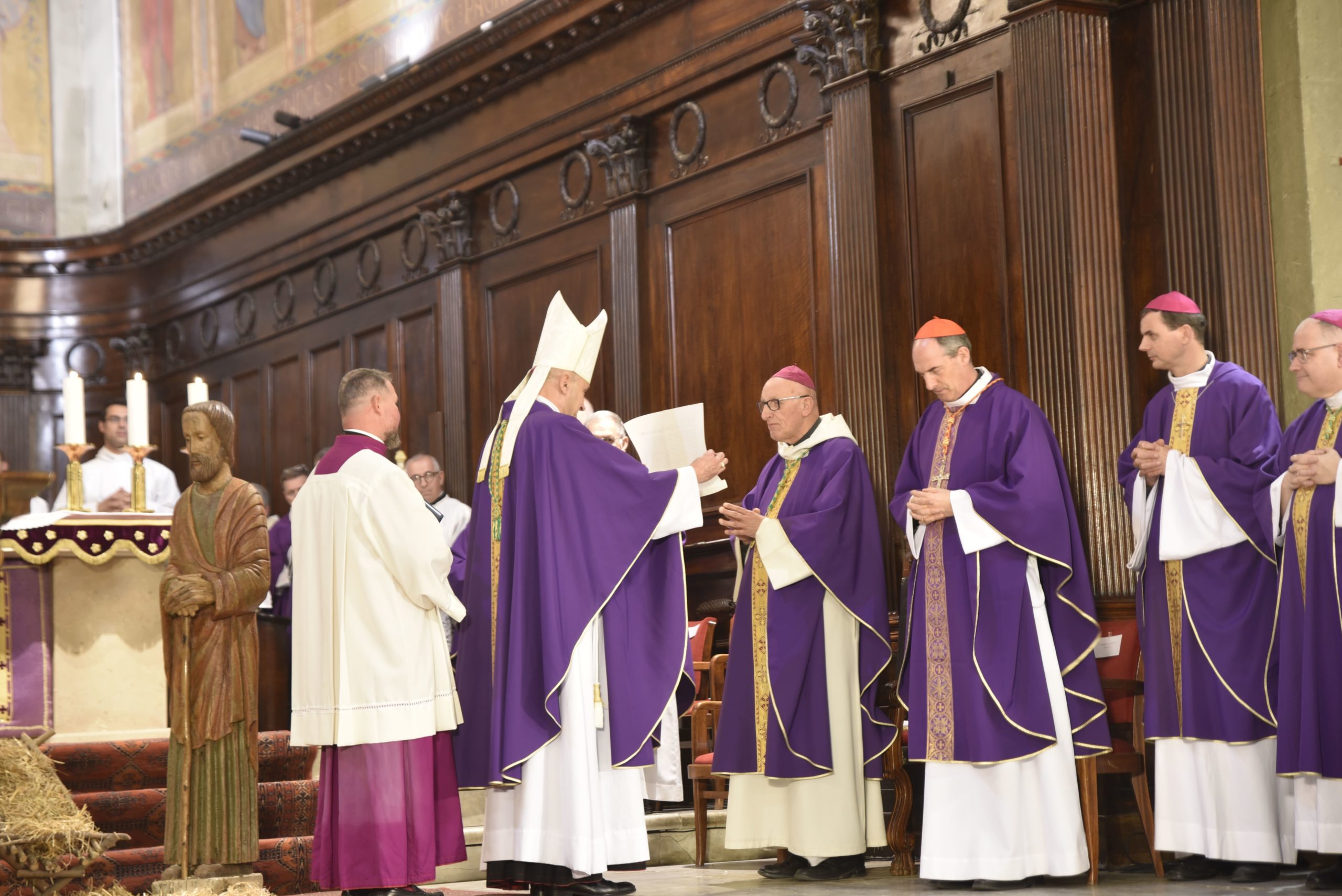 Après avoir reçu la lettre apostolique de sa nomination d’évêque coadjuteur, aussi appelée bulle apostolique, Mgr François Touvet est allé la présenter à Mgr Rey ainsi qu’au collège des consulteurs. Le chancelier du Diocèse en a ensuite fait la lecture officielle devant l’assemblée.