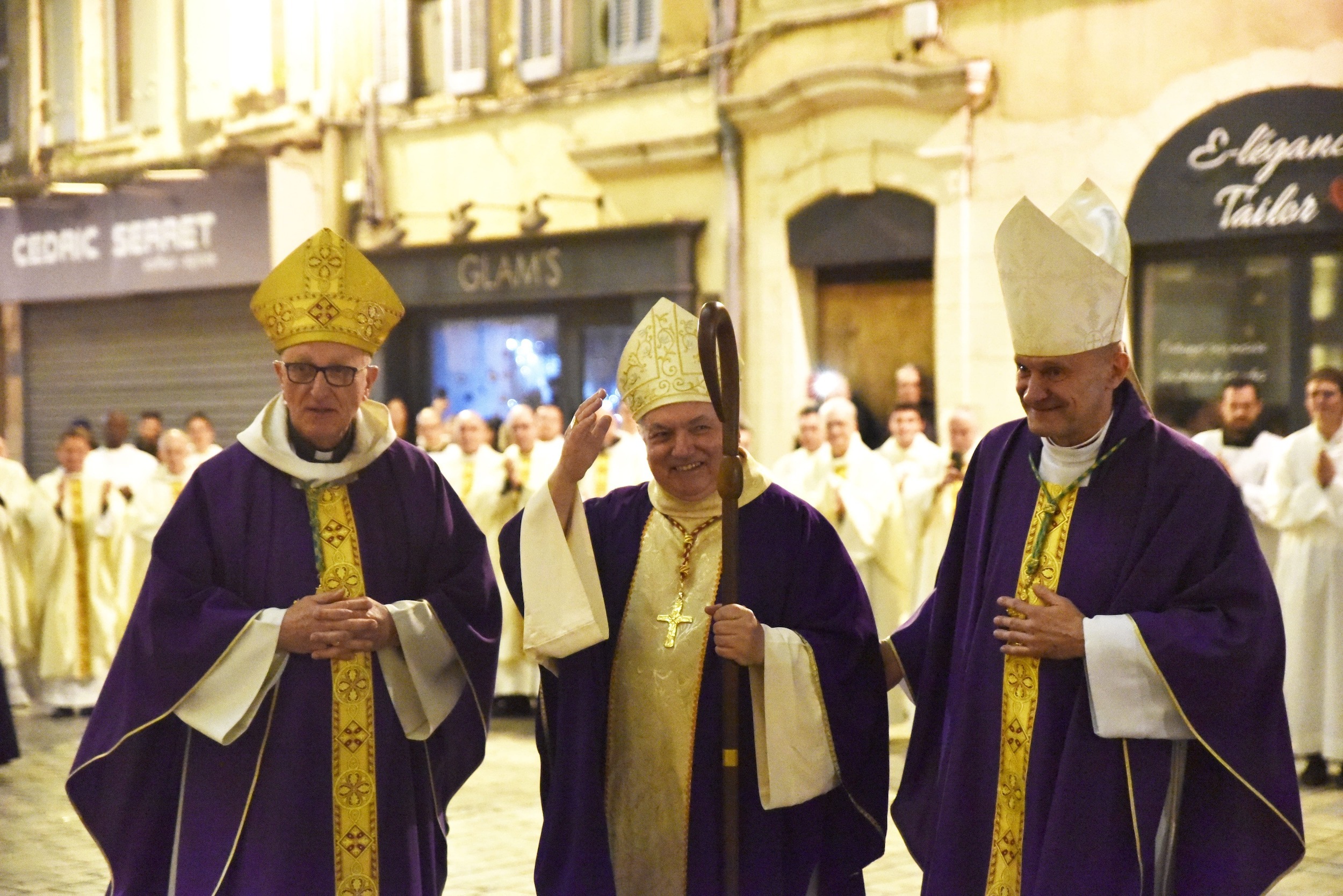 - Mgr Rey et Mgr Touvet lors de la procession d’entrée