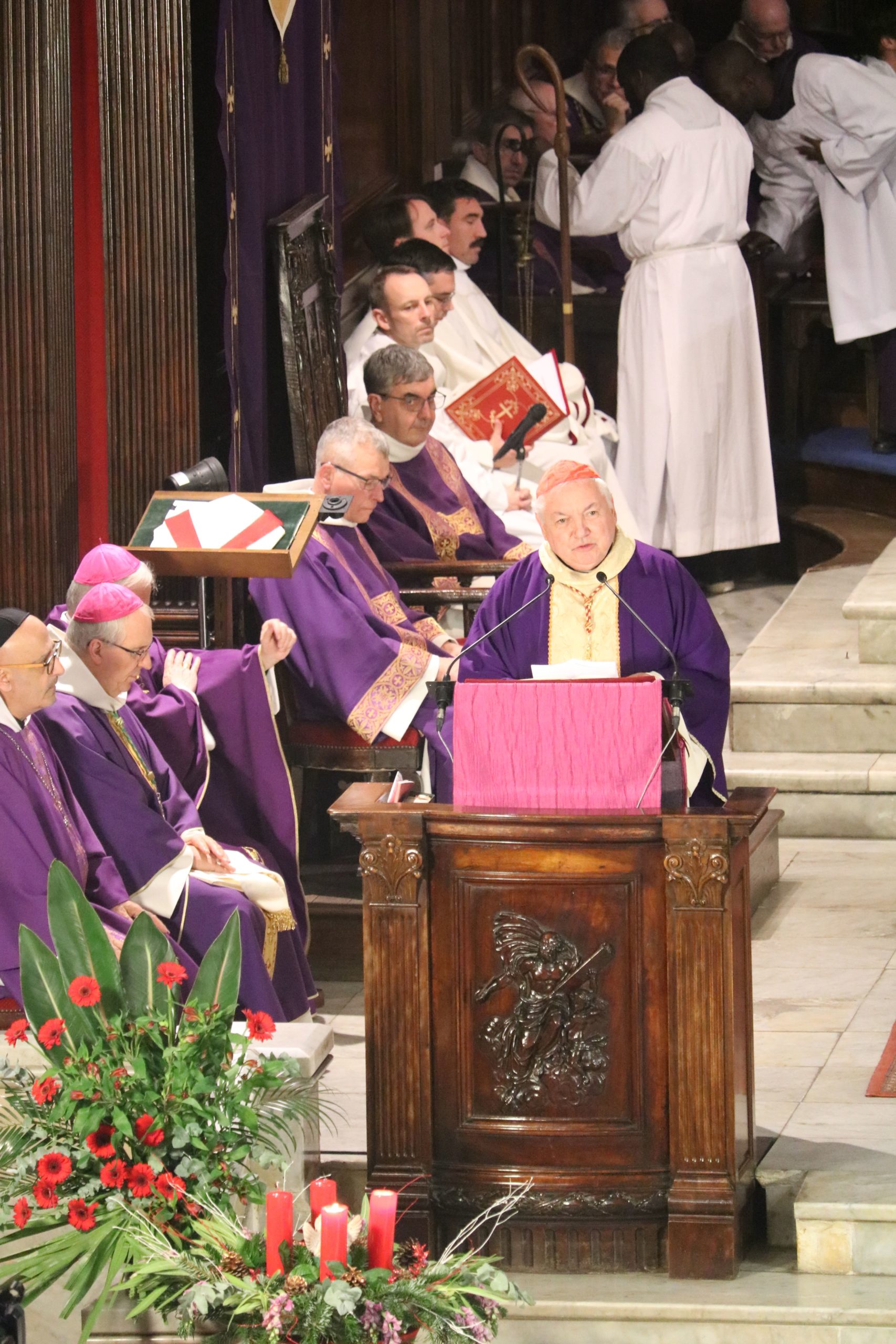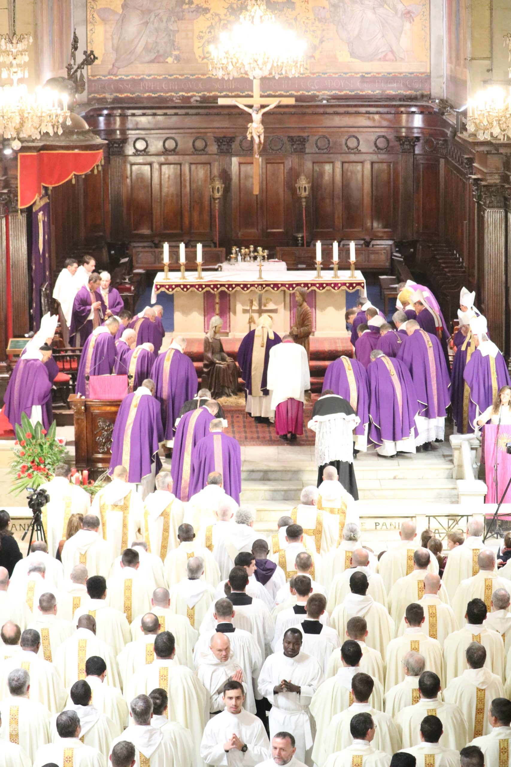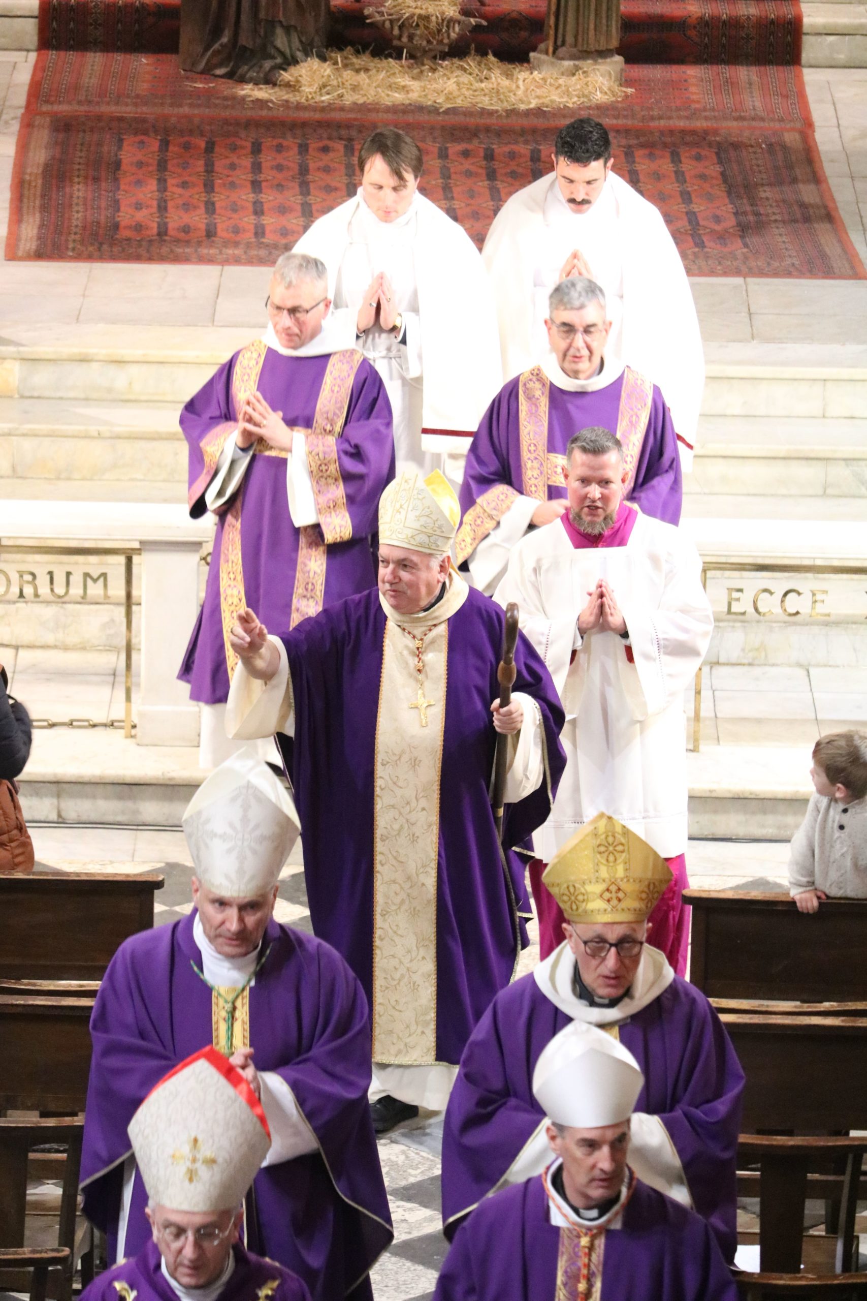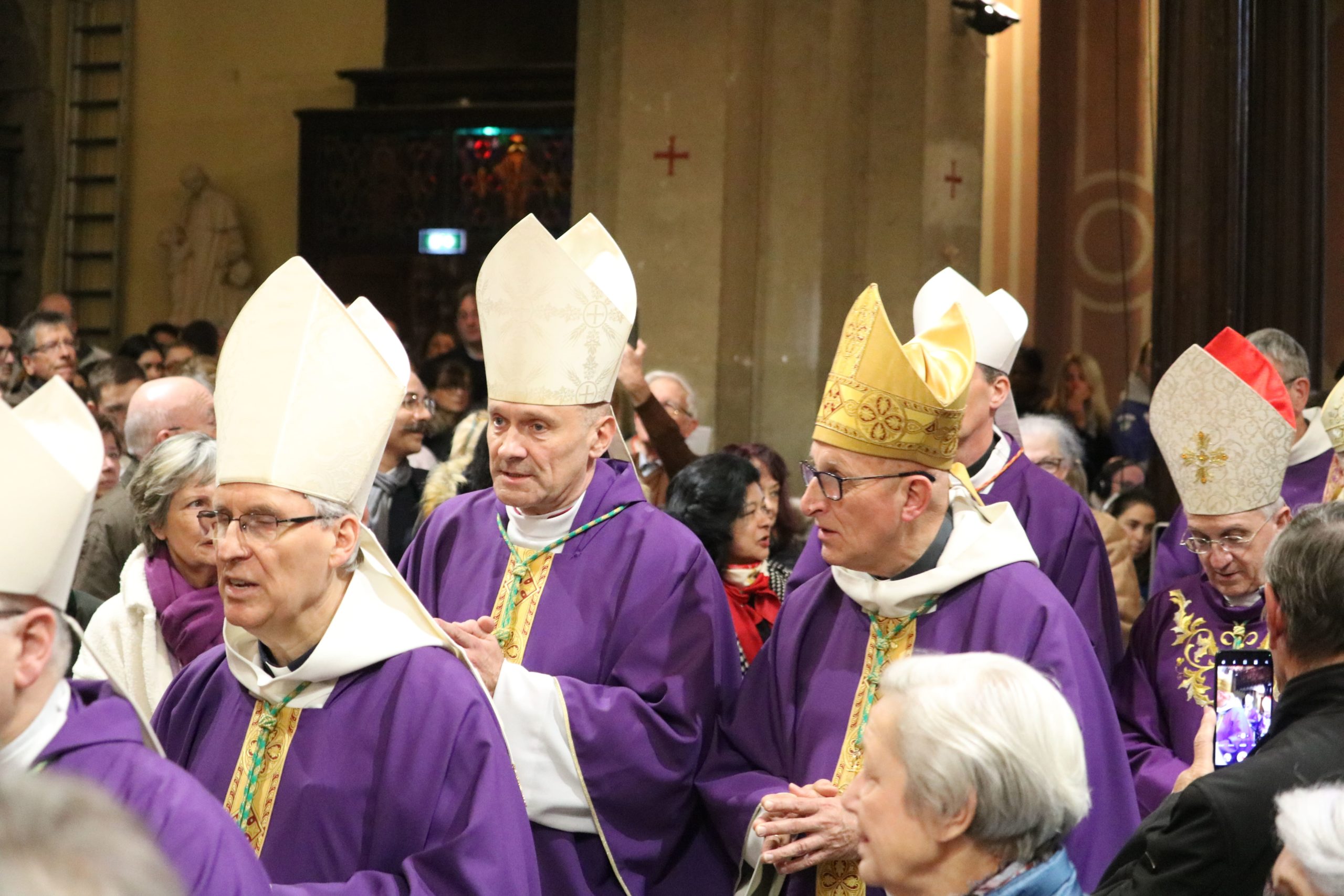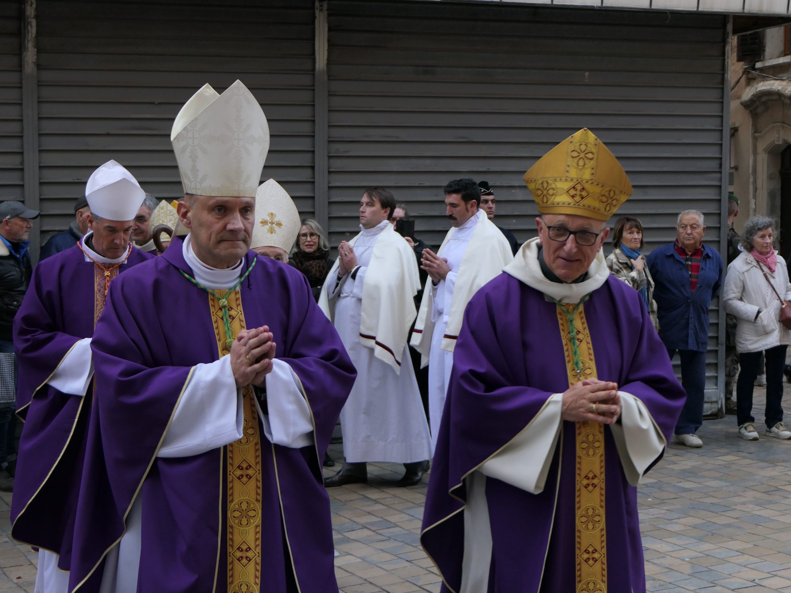 - Les évêques, vicaires généraux et le cardinal s’avancent vers la procession
