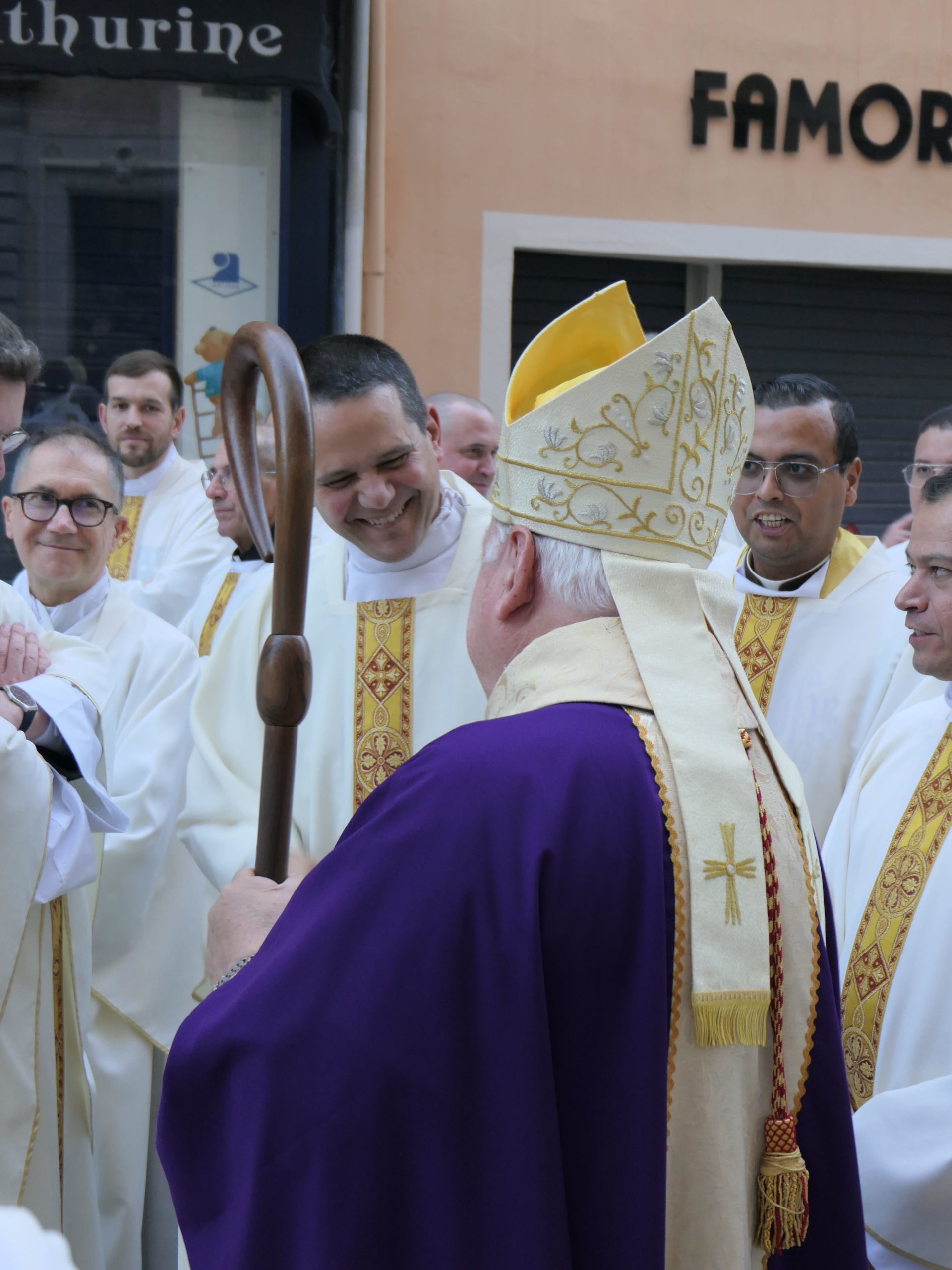 - Mgr Aveline à la rencontre des prêtres avant la procession