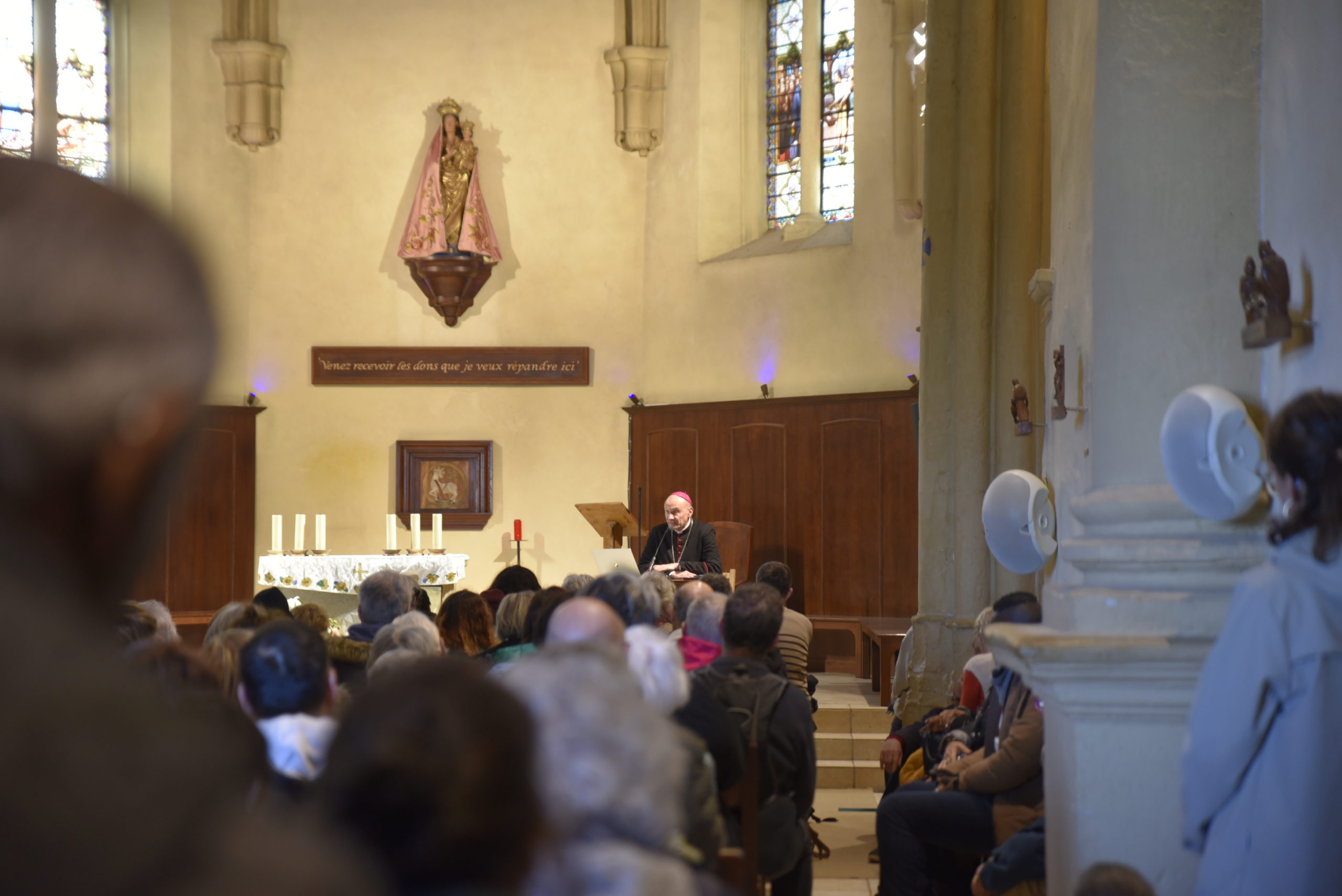 En début d’après-midi, Mgr Touvet a proposé une conférence à Notre-Dame de Grâces, afin d’expliquer qui est vraiment saint Joseph, en tant qu’homme, époux, père de famille, et en quoi Marie et Joseph sont des pèlerins d’espérance et des modèles à suivre dans notre vie. Tout au long des festivités, il était possible d’aller voir un prêtre pour recevoir le sacrement de réconciliation.