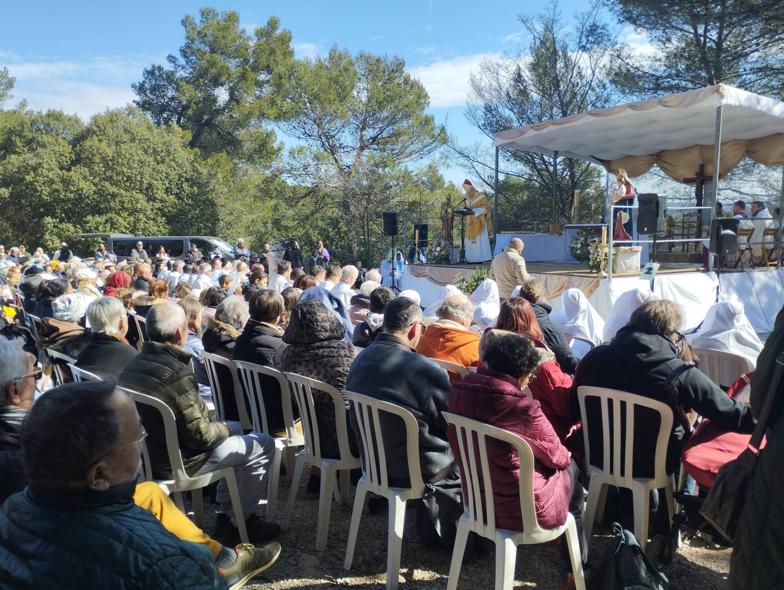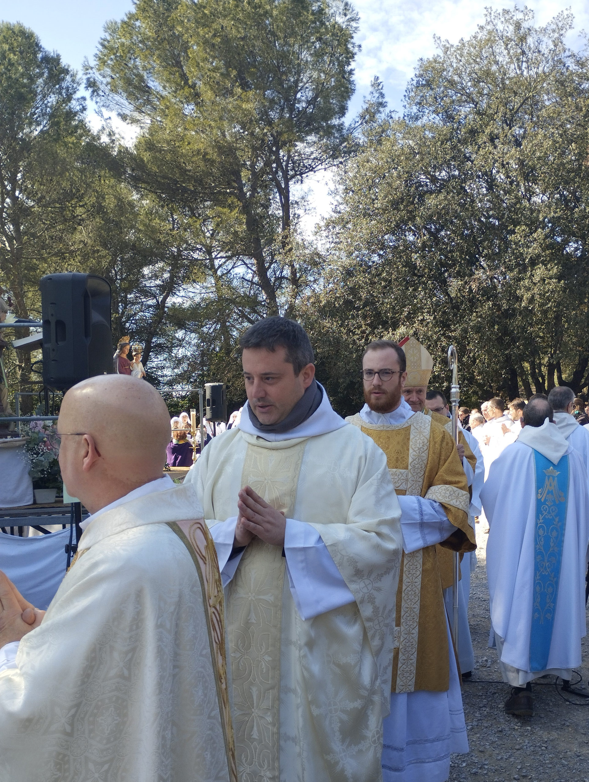 La fête de la solennité de Saint Joseph du samedi 19 mars, a commencé tôt le matin avec les laudes et tierce, à la chapelle du sanctuaire du Bessillon, puis s’est poursuivie par une messe présidée par Mgr François Touvet, en extérieur, où une foule de pèlerins était présente. Le temps du repas a permis des échanges fraternels, et pour certains fidèles, de passer plus de temps dans la chapelle ou à la source pour déposer leurs prières et leurs intentions à saint Joseph.